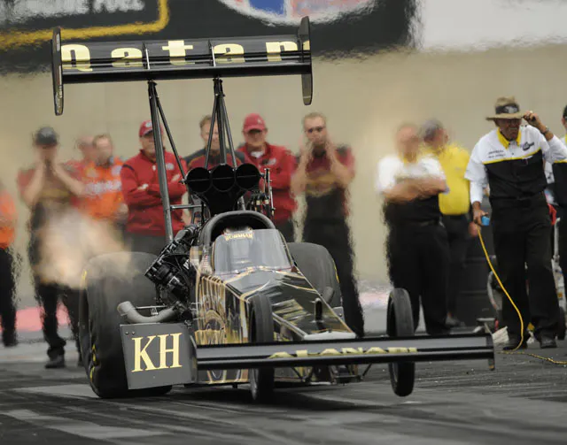 During Top Fuel qualifying, points leader Antron Brown reset the national elapsed time record at 3.766 seconds, but had it quickly snatched away in the first round of eliminations on Sunday as Del Worsham powered to a 3.760-second defeat of Shawn Langdon. But just as tuner Alan Johnson has done in the past, the Brian Husen-led team saved its best for last, as Worsham sailed to the quickest pass in drag racing history at 3.735 seconds at 323.81 MPH. The bad news was that opponent Spencer Massey had strapped a holeshot on Worsham and stole the victory with a 3.77, but in a sport where numbers reign supreme, Worsham’s performance won’t be forgotten anytime soon.