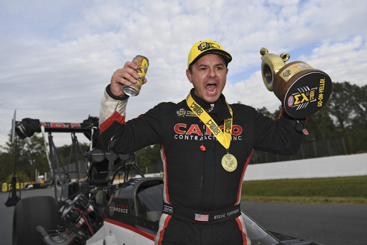 Top Fuel racer Steve Torrence accomplished something on Sunday at the NHRA Carolina Nationals in Charlotte, North Carolina that no other professional driver has in the 11-year history of the series’ Countdown to the Championship playoff format: go unbeaten, untied, and unscored upon in four straight races to open the six-race conclusion to the season.