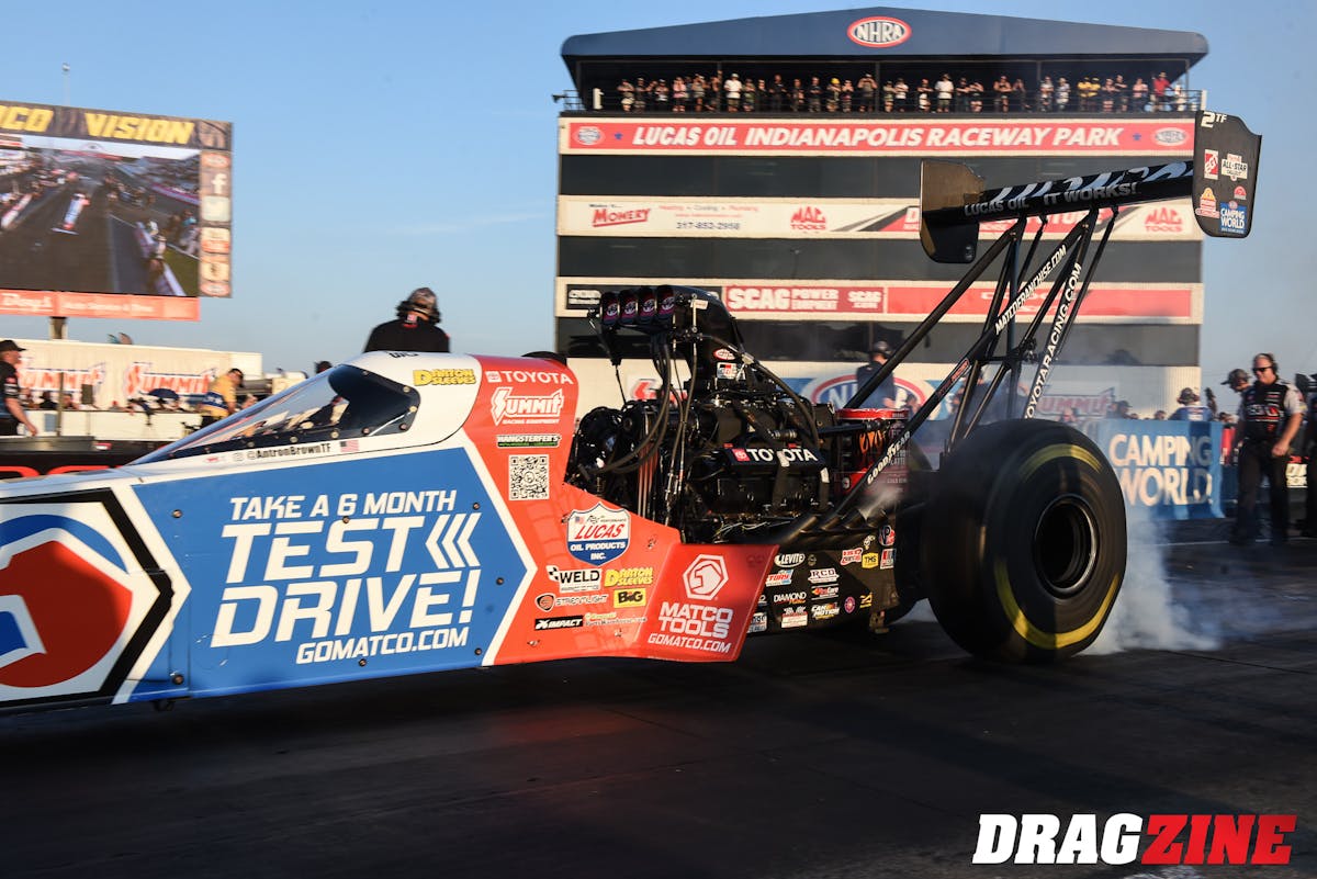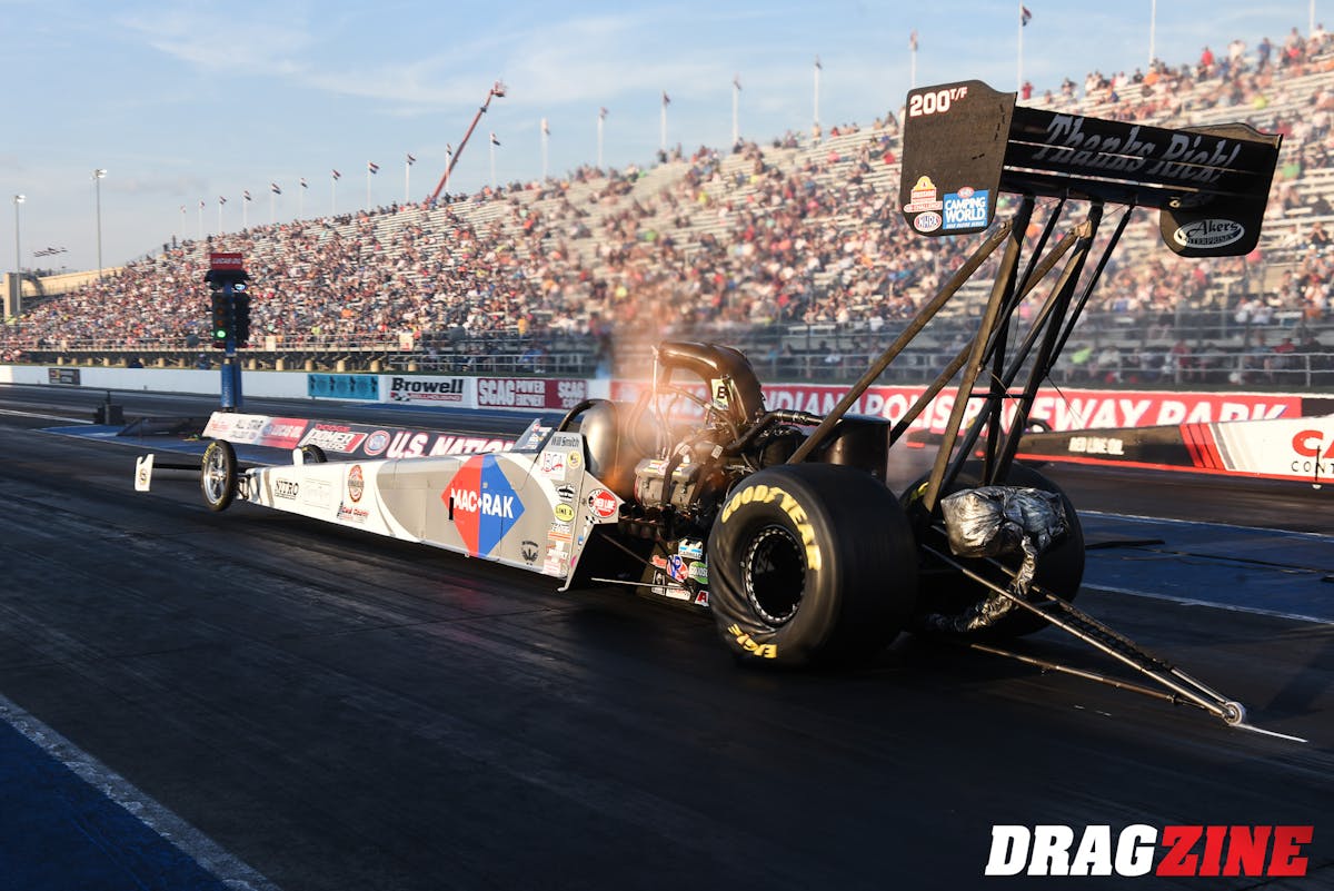 Second generation drag racer Travis Shumake made his first passes in a Top Fuel dragster Tuesday at Lucas Oil Indianapolis Raceway Park following the U.S. Nationals.