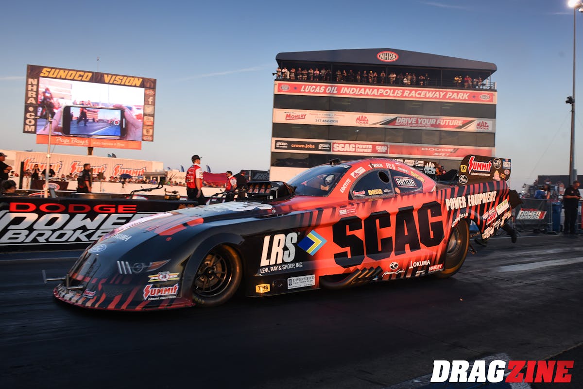 Shumake, who purchased his Top Fuel dragster lovingly nicknamed “Judith Light” in the spring of 2023, made three pulls down Indianapolis Raceway Park, with support from crew chief Rob Flynn and the Scrappers Racing team. Shumake gradually progressed with his first pass to nearly 200 feet and his second to about the 400 mark with tire smoke that had Shumake shutting the car off. On his third attempt, Shumake made a planned 600-foot shut off but at 3.939 seconds and 254.90 mph it was enough to count towards his Top Fuel license and eclipsed his career best 3.967 pass in a nitro Funny Car.