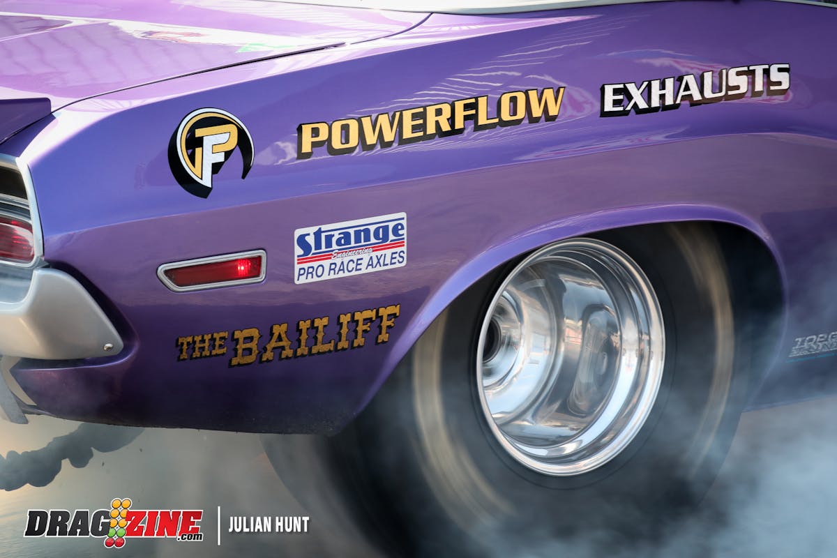 Due to rain delays on Friday, there were only three qualifying runs in Pro Mod. Ålund drove Magnus Petersson’s The Old 51 Chevrolet Business Coupe to the Number One qualifying spot, but it wasn’t pretty. Ålund only made it to the finish line twice, and just once under full power.
