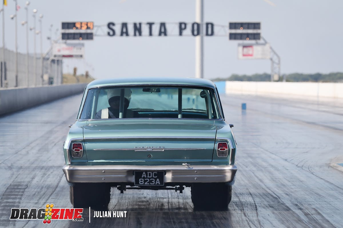 Due to rain delays on Friday, there were only three qualifying runs in Pro Mod. Ålund drove Magnus Petersson’s The Old 51 Chevrolet Business Coupe to the Number One qualifying spot, but it wasn’t pretty. Ålund only made it to the finish line twice, and just once under full power.