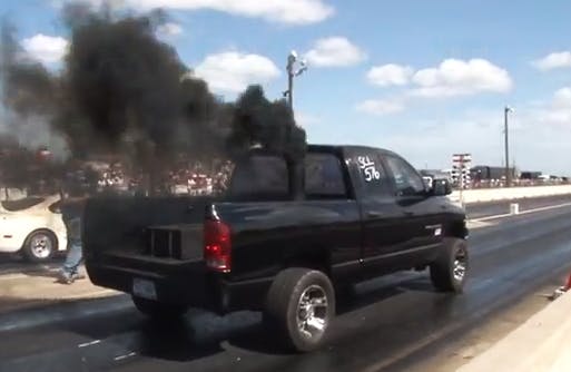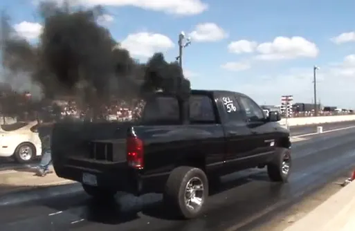 Despite its size, all of that power and torque is enough to push this big Ram into the 11-second zone and pretty well demoralize a newer model, supercharged Dodge Viper on the track. Now, to be fair, the driver of the Viper limped the car out of the gate and let the truck get a lead, but even at full song further down track, the big diesel is clearly still pulling away as it trails a long black veil of diesel fumes behind it.