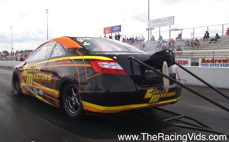 Import racing in the United States has been going strong for a number of years, and despite various sanctioning bodies coming and going, the import racers still find a way to line their cars out and do some work at the track. Over on the east coast, Maryland International Raceway holds some of the biggest events that feature the best import racing in the country. At this year’s IREV Import Revolution race things got a bit hairy for Jonathan Reynolds and his Prayoonto Racing All-Motor Honda Civic at the top end of the track.