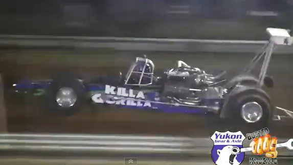 The “Killa Gorilla” gets down the 200 foot course in less than 2.5 seconds, with the Dana 30 front end in the air the entire length of the track.