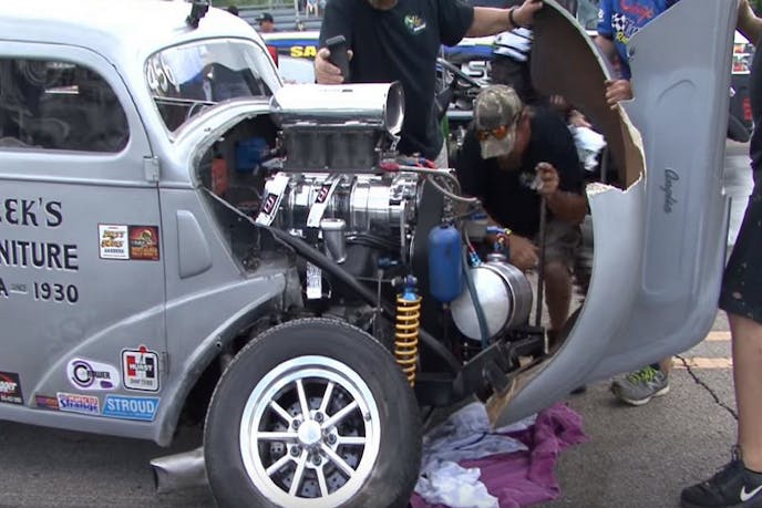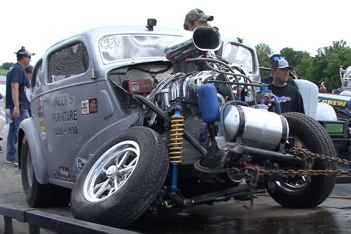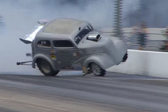 If you’re looking for the finest in old-school drag cars, the Gasser will always be at the top of a very short list, and they’ve played an integral role in the nostalgia movement in drag racing. These cars can take a delicate hand to pilot, though, and racing veteran Jim Fissel found out just how quick and hard one of these cars can bite you when he skipped his Anglia Gasser off the retaining wall at the Throwdown In T-Town spring event this weekend.