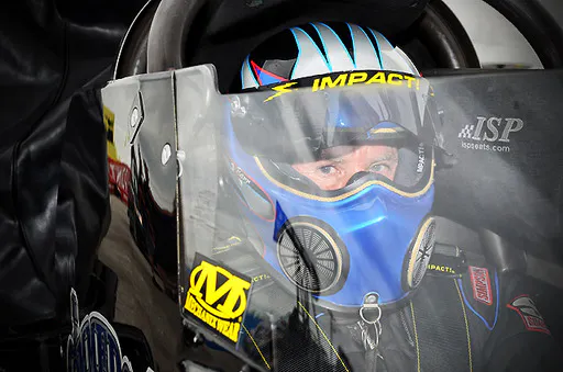 After both cars charged hard to around half track, the engine in Ashley’s dragster began to drop multiple cylinders with a big flash of flame as the pair neared the stripe. As the scoreboards lit up, Dakin recorded a 3.95 at a slowing 278 MPH that put him 18th in the qualifying order, while Ashley’s quicker elapsed time was tossed after the zamboni was called upon to clean up his mess. But the elapsed times were the least of either drivers’ worries as they tossed the laundry, as Ashley’s dropped cylinders forced him toward a collision course with Dakin’s Commercial Metal Fabrications dragster. Dakin, a four-decade veteran of top Fuel racing, hardly flinched as Ashley came within feet of sideswiping him at well over 200 MPH. Ashley was quickly able to reign his machine in without incident, but it certainly made for a great television highlight, and one that’s even more intense from the onboard camera.