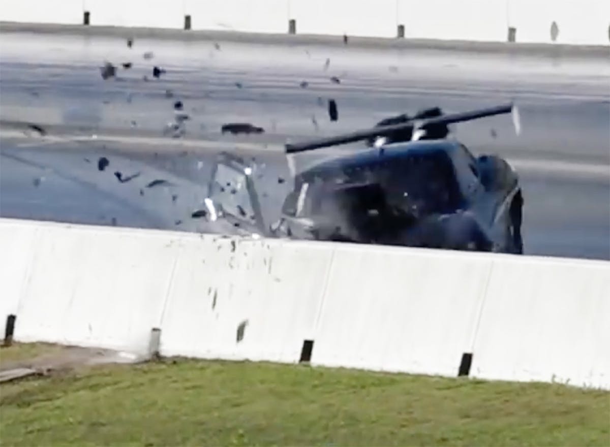 The car rocketed across the centerline, completely out of the control of Hubbard and struck the guardrail with incredible force, causing major damage to the passenger side of the car. Luckily, though, Hubbard was alert and able to bring the car to a safe halt and climbed out under his own power.