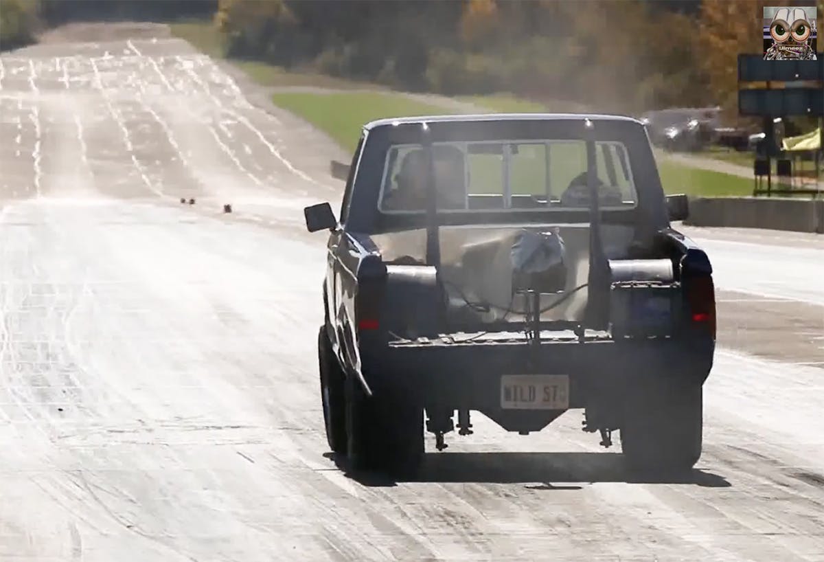 With the twin turbos mounted in the rear of the truck it really doesn’t sound that intimidating, until Olson starts spooling the snails up. The video from Victoryredcolorado captures all of the boosted big block Ford noise this truck can make. Running in the Rockford Pro Street Division class, the Rowdy Ranger showed exactly how it earned its nickname, running some low nine-second passes before it ripped off an 8.70 at 163 mph. The Ranger makes running deep into the eight-second zone look easy on each pass while surprising the racer in the other lane each time.