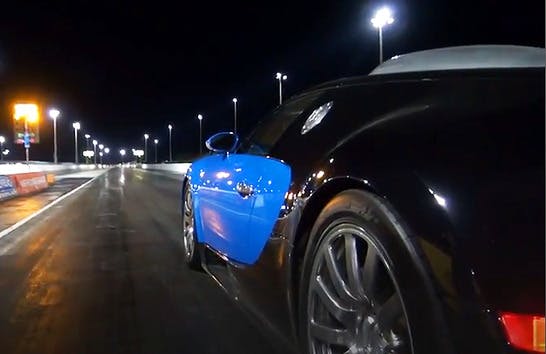 As this video shared with us by That Racing Channel proves, France-based Bugatti’s exquisite Veyron mid-engine sports car is exactly that, delivering the quickest quarter mile times of any production vehicle on earth – save for the Ford Mustang Cobra Jet and Challenger Drag Pak.