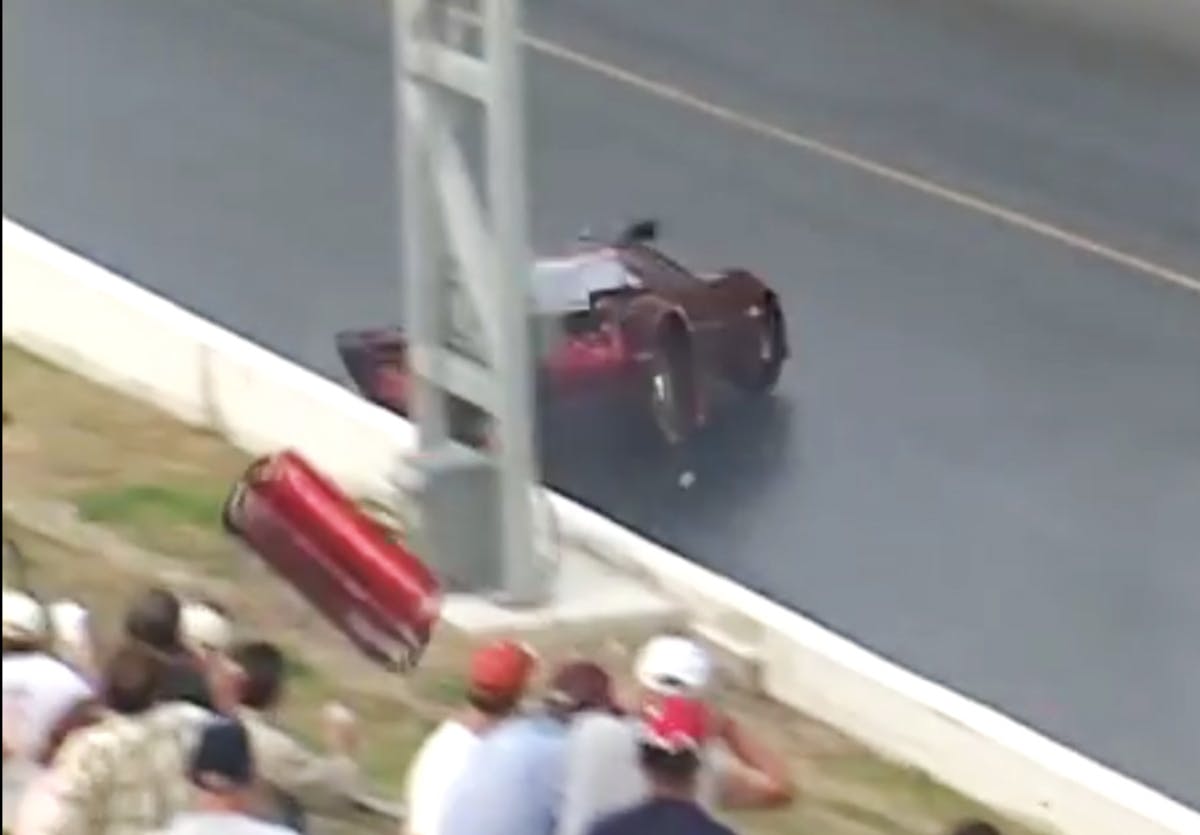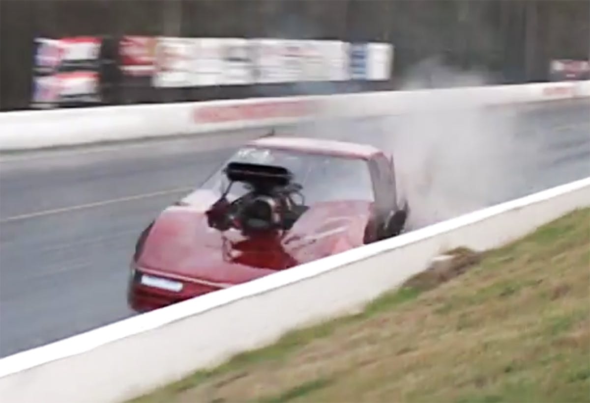 During the opening round of eliminations while racing alongside Pro Mod veteran Chip King, Blackwell and his Corvette got as out-of-shape as you’ll ever see a race car, eventually striking the wall at a hard 45-degree angle— right in front of Melton, who had set up his camera and tripod to capture all the action from near the eighth-mile marker.