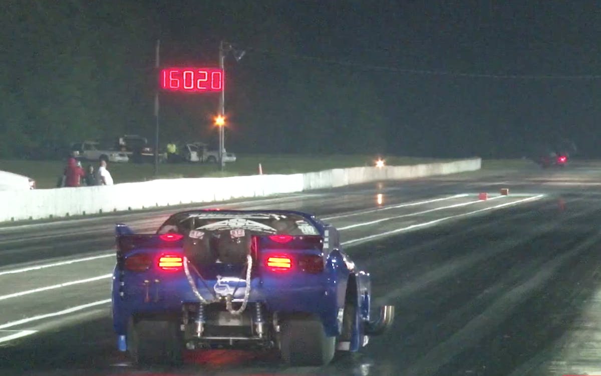 Hancock, in his nitrous-assisted Corvette, bumped in first. Harrison, meanwhile, used up nearly the entire seven alloted seconds to build the boost and bump in in the left lane. The instant he did, the tree flashed and Harrison was off to the races, charging to an off-pace 4.40 for the win, as Hancock coughed and choked off the starting line and stopped just beyond sixty-feet. Both Harrison and Hancock, along with all of the spectators and officials, were a bit dismayed at what had just happened, thinking perhaps the tree had simply malfunctioned. Unlike the standard delay on a .400 pro tree between the stage bulbs being lit and the drop of the ambers, this was instantaneous.