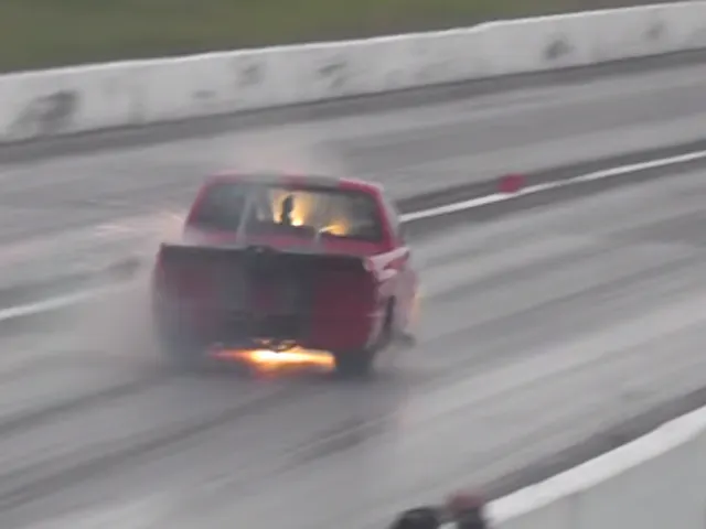 There are few things more terrifying that fire, and being strapped into a race vehicle traveling at-speed that suddenly erupts into flames has to be a harrowing experience. Chris Cadotto, driver of the fan-favorite “Brick” Dodge Ram pickup recently had that experience at Milan Dragway, but luckily Chris suffered only a few minor burns from the inferno.