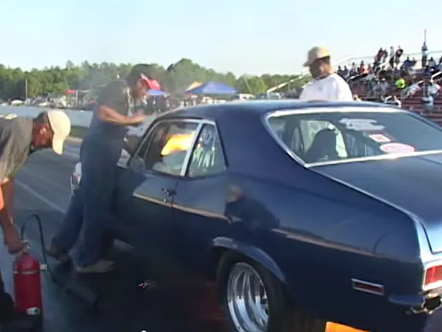 First we see the car, a dark blue Nova, barely leave the beams when the nitrous activates and sends flames out both the intake and exhaust. Acting on the instinct to get the car off the track, the driver immediately attempts to crank the Chevy as track personnel and crew members run in to assist. After a few seconds of cranking, the driver likely pumped the gas and attempted to fire the car again and it backfired yet again, this time even louder and more violently than the initial sneeze as he launched. The crew member jumps back quickly and doesn’t appear to have been injured by the explosion, but it’s safe to assume he will think twice before sticking his head down to peek under the cowl of any more race cars anytime soon.