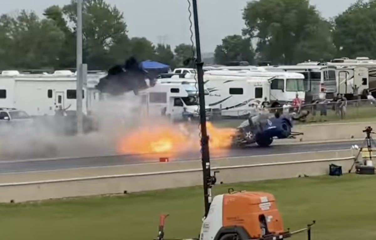 “Street Outlaws No Prep Kings” competitor Eric Bain was injured in a high-speed crash during filming at Illinois’ Cordova International Raceway on Saturday. Bain, from Greenville, Texas, was racing his turbocharged Corvette — a car that had only just been completed in late May in time for the NPK opener — opposite the supercharged Corvette of Eric Kvilhaug in the opening round of the big-tire invitational when he got loose near mid-track and careened into the guardrail. The glancing impact sent the car spinning and tumbling to a stop in the shutdown area. Bain quickly climbed from the car under his own power, walked to the guardrail and began removing his safety equipment. Only when the adrenaline of the moment wore off did Bain realize the extent of his injuries — later determined after being transported to a nearby hospital to be a broken left ankle and toes, which he later underwent procedures to treat.