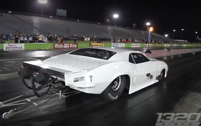 Rolling under the tower for one of the last passes of the night, Shearer uncorked the Crowmod for it’s first full pull of the weekend at American Outlaws Live and sent the crowd into a frenzy with what appeared to be a fairly solid run for the Oklahoma City-based team. As you can see from the testing videos provided to us by 1320Video, Big Chief and Team Midwest Street Cars came to Texas with a loaded gun ready to do battle.