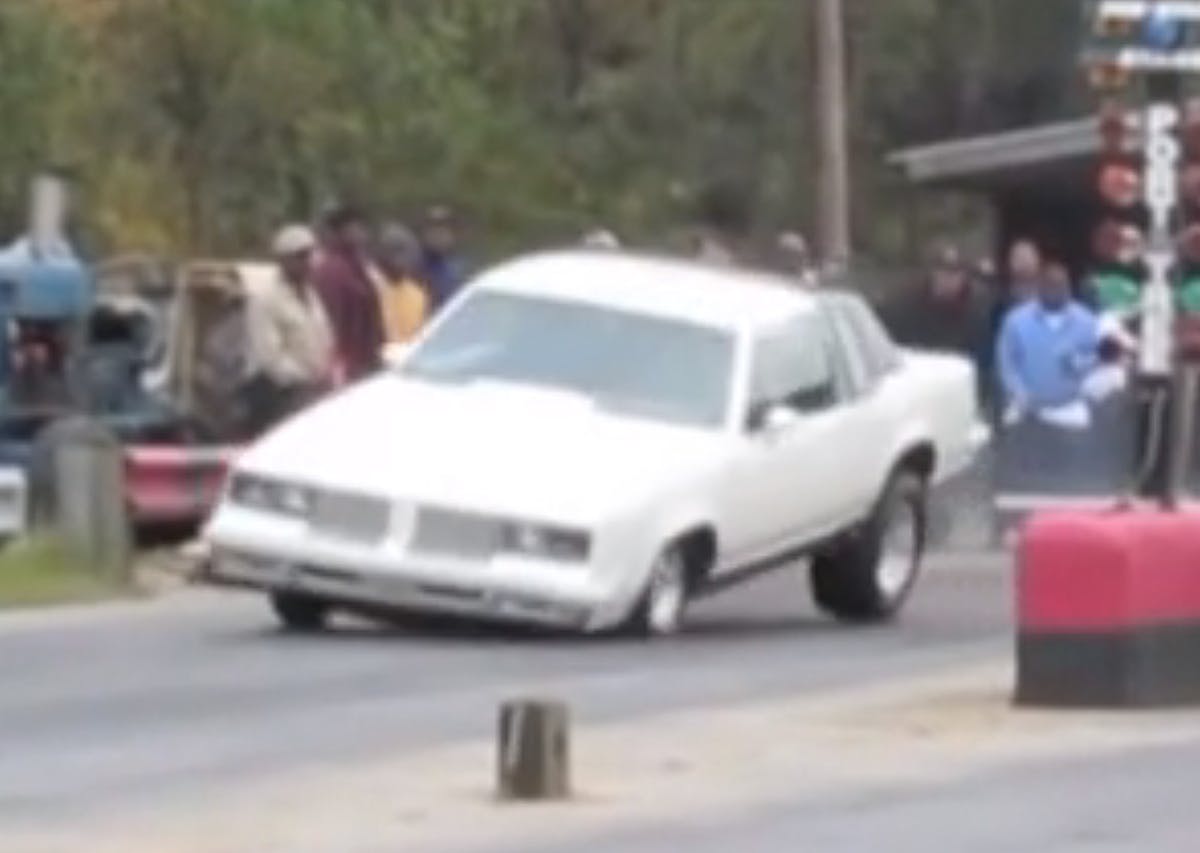 But it’s even worse when your misfortune is broadcasted on the internet, and in this case, that misfortune was a completely sheared-off set of passenger side wheel lugs that sent this Olds Cutlass bucking off the starting line like a pissed off bull at a rodeo.