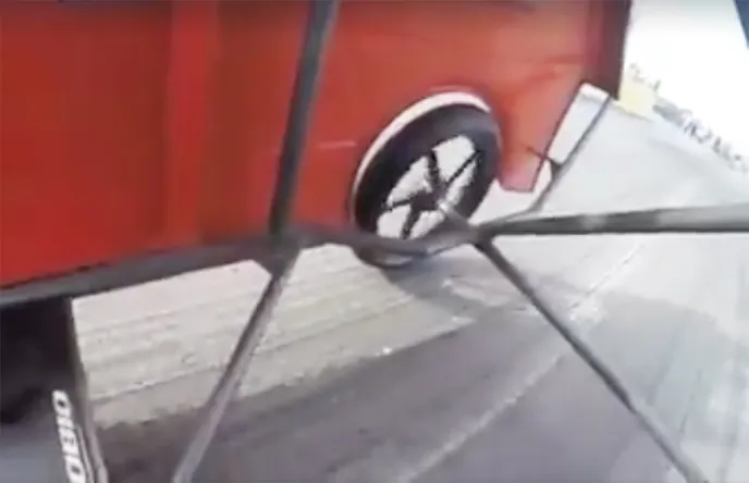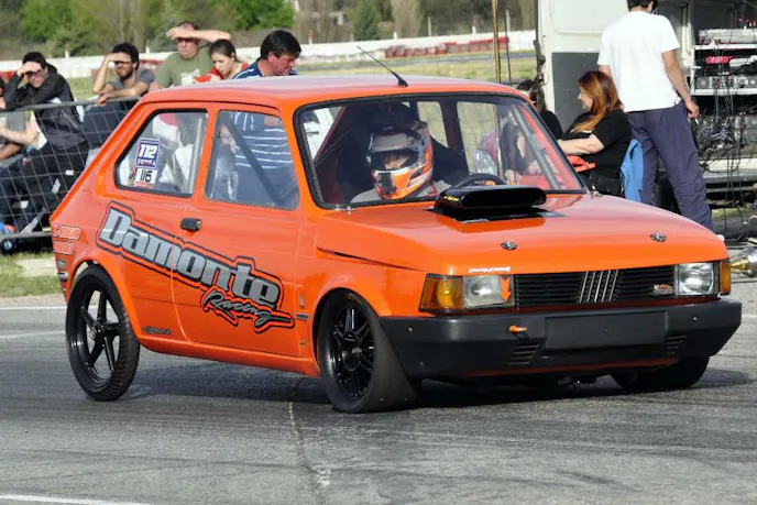 Mendoza and his Damonte Racing team have constructed the Fiat to be as light as physically possible, and because the front wheel drive car doesn’t require a whole lot beyond the dash and the drivers seat, they’ve simply done away with it. There’s a seat, a roll cage, and really nothing else, as the floor, the rear hatch, bumpers, and all have been cut away to reduce weight. All that remains behind Mendoza is a set of what appear to be some beefy bicycle wheels attached to the frame.