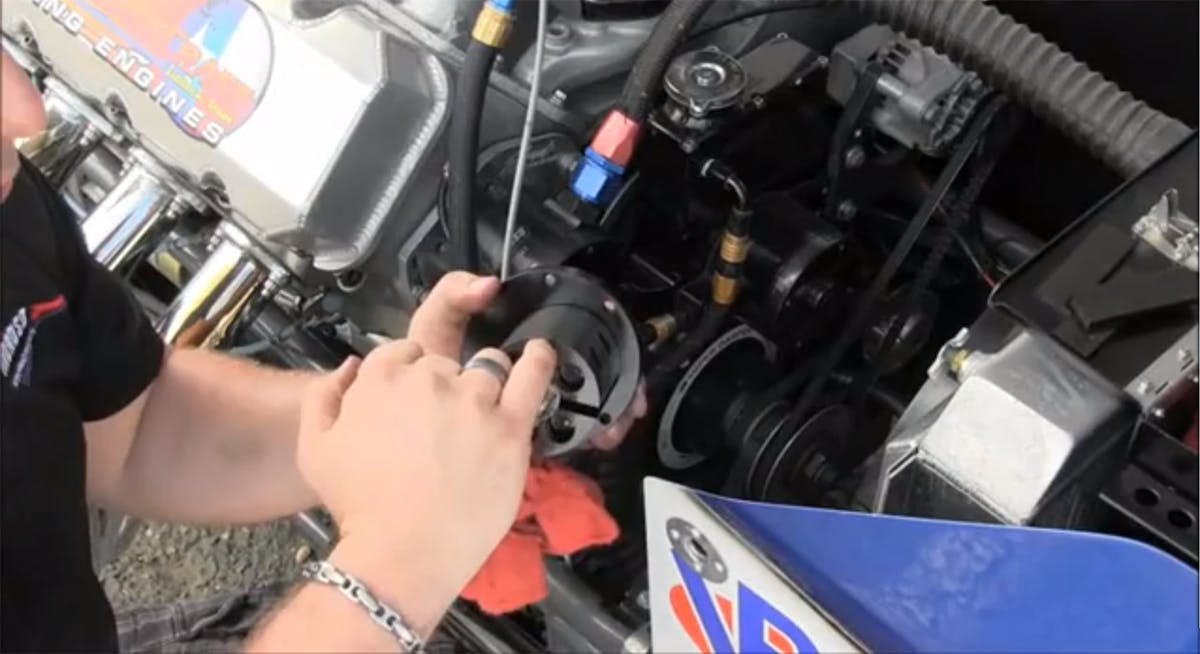 Since the pump cover unbolts from the front of the pump, you simply need to remove the pulley and belt before taking out the for retention bolts. From there, pulling off the cover is as simple as sliding the mechanism out of the front side of the pump, taking care not to lose the thrust washers and bearing that are hidden on the back side of the shaft. Cleaning up the vanes is as simple as spraying carb and choke cleaner on the vanes after removal. He covers a couple of tech tips to note that will be helpful in diagnosing and repairing the pump mechanism.