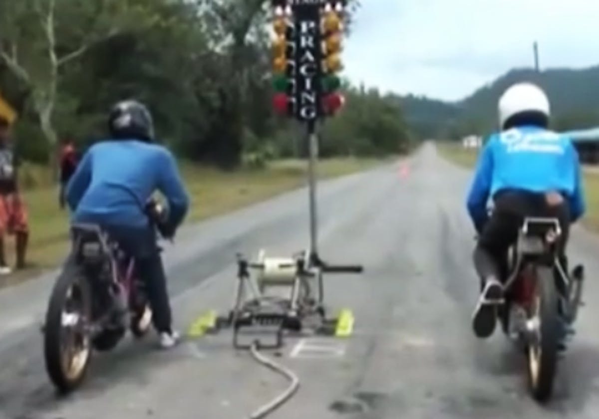 If there’s such a thing as small-tire motorcycle drag racing, we may have just discovered it. Unfortunately, if you really want to witness this form of two-wheeled racing, you’ll have to pack your bags, your cameras (how else are you going to catch these racers eating the pavement?), and board a plane to Thailand. You know, that country where many of your clothes and electronics are made.