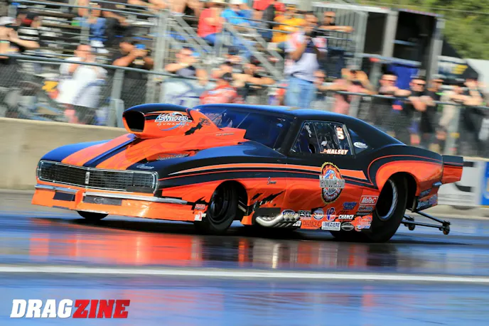 Racing opposite of Cox in qualifying, Halsey stormed to a 3.592 at 210.77 mph, earmarking his name in history and placing his Jerry Bickel Race Cars-built, Gene Fulton 959-powered ’69 Camaro into the spot slot in a stacked field of Pro Modified competitors going into eliminations.