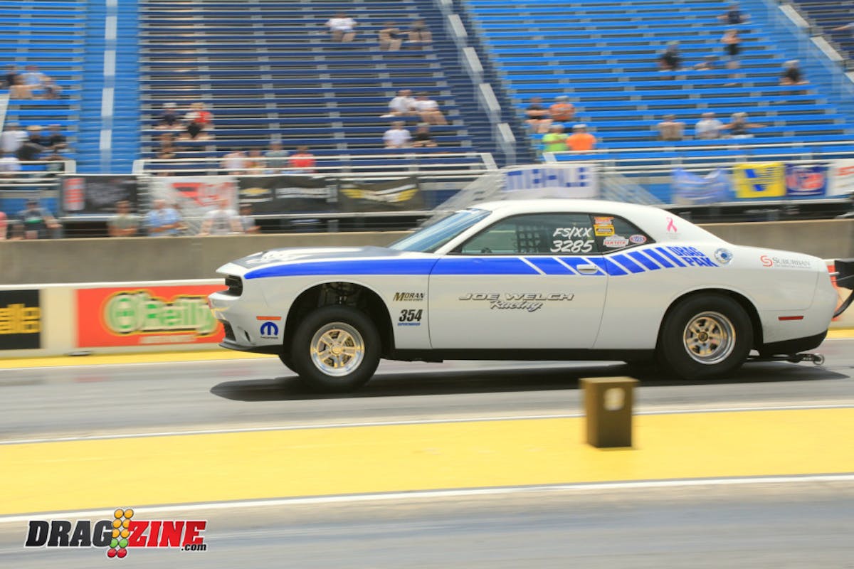 With late model Chrysler Hemi power from Mike Moran, Welch has had a breakout season, winning twice — in back to-back races — in the NHRA SAM Tech Factory Showdown, at Bristol and Norwalk. Welch currently leads the Factory Stock Showdown points race, and that fact will have he and his crew burning the midnight oil to make repairs to the Challenger in time for the NHRA U.S. Nationals in Indianapolis in less than a month’s time.
