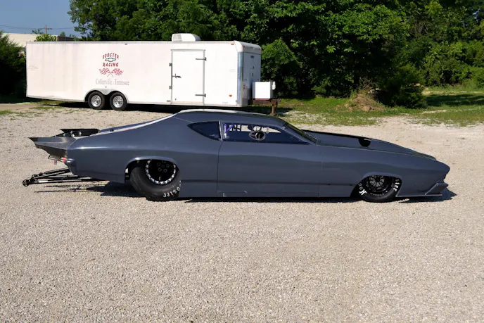 “The new car will be 2015 mustang double framerail car and it will also have a 481x Stage 4 from Pro Line. This car is purposely being built with big tires to take on the Street Outlaw racers,” Kelley explains.