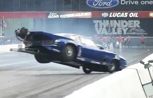 Lizzy Musi, the 21-year old daughter of legendary doorslammer racer and engine builder Pat Musi, went for a ride she won’t soon forget on Friday night during qualifying for the ADRL Spring Drags III at the Bristol Dragway in Tennessee.