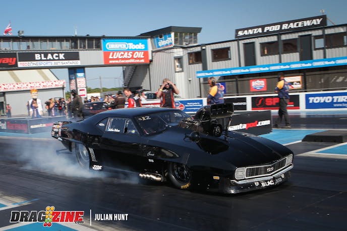 This weekend’s Doorslammers event at Santa Pod Raceway was billed as a true all-out Pro Mod race with no rules except for safety specifications. With big prize money on the line Wulcan pulled out all the stops and his performance showed it when racing began. On each pass, Wulcan consistently got quicker, even clicking the car off early as he worked on the quarter-mile tune-up in his Camaro.