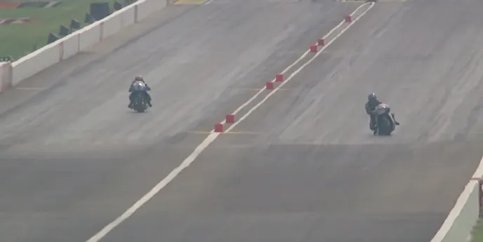 In the world of heads-up drag, everyone is pushing the limits of their machines on each and every pass down the track. During the NHRA’s U.S. Nationals this past weekend at the Lucas Oil Raceway in Indianapolis, NHRA Pro Stock Motorcycle jockey Joe DeSantis went for the ride of his life as his Team Joey D Suzuki started walking out of the groove around the 1,000 foot mark. DeSantis tried to lean into the bike, pulling it back into the groove to hopefully achieve a full pull in the first round of qualifying to put himself in the tough 16-bike field. As the bike comes off the racing surface and into the shutdown area, the Suzuki finally got away from DeSantis and immediately turned to the left, taking a hard shot into the concrete retaining wall.