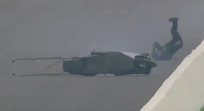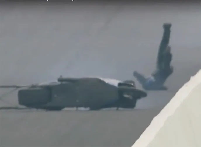 Upon impact, the 73-year old DeSantis then came off the bike, his body flipping and tumbling violently after traveling at over 150 miles per hour when he crossed the quarter-mile clocks of Lucas Oil Raceway. DeSantis jumped right up immediately after sliding to a stop, the visor broken off his helmet and the NHRA Safety Safari was right on top of him as quickly as possible to check on his condition.
