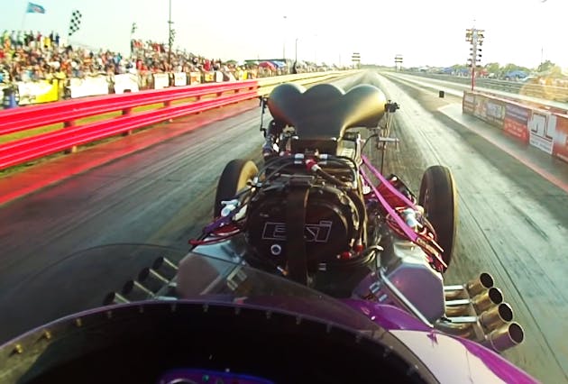 Armed with a fleet of handheld and pocket-sized remote cameras, the Californian has proven time and again that he is without a doubt one of the greatest videographers and video editors the sport of drag racing has ever seen. With an almost exclusive focus on three of the most exciting racing categories in the sport today — wild and wooly nitro-burning Fuel Altereds, Nostalgia Nitro Funny Cars, and Pro Modifieds — Mayhew’s videos are full of awesome from the word go.