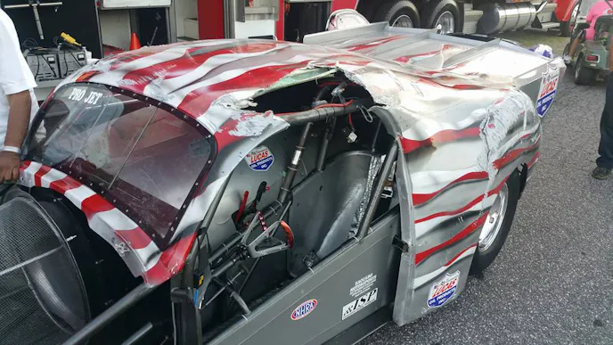Jet car racer Terry Rosberg was making exhibition passes on Sunday in his American Thunder jet-powered Pro Mod at the Wilkesboro Dragway in North Carolina, not far from his home in Rockingham, when things turned ugly in a hurry.