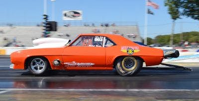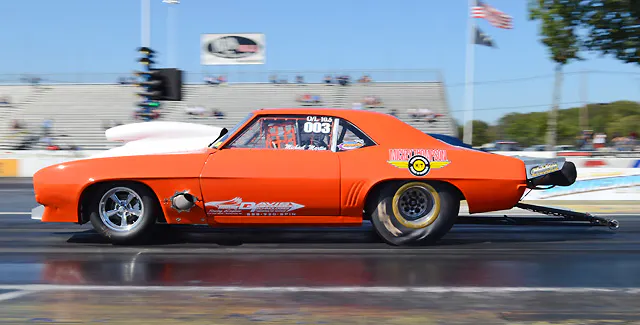 During Cecil County Dragway’s Outlaw Street Car Shootout on Saturday, Martin’s record-setting ’68 Camaro – packing big cubic inches and nitrous for power – got away from him and took a hard slap to the opposing guardrail on the passenger side of the car.