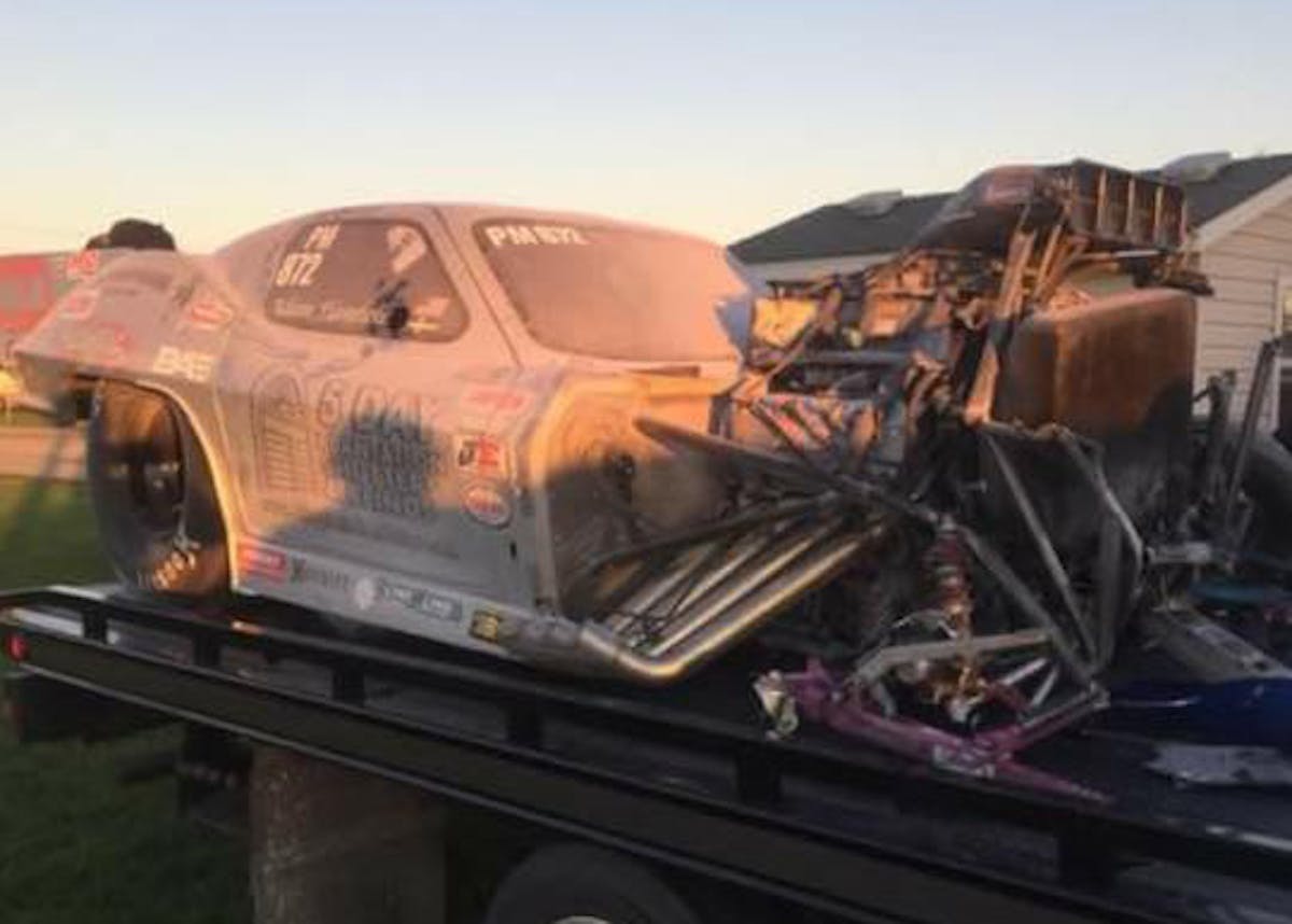 “If you ask my wife and parents they might think I’m a bit nuts. But I don’t like to give up, and the same goes for the guys on our team. So, late last night we picked up another racecar. I bought it as a roller, so the engine and transmission and some electronics from the crashed Corvette will be used after we check the parts out. The plan is to have all this done, so we can test the car Thursday and race the car in St. Louis at the Street Car Super Nationals this coming weekend.”