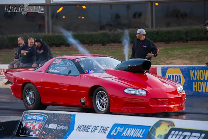 Stevenson, from Bolingbrook, Illinois, was making his opening qualifying lap at the NHRA Gatornationals in Florida on Friday afternoon opposite of Gerry Capano when his nitrous-assisted, Reher-Morrison-powered Camaro encountered a nitrous explosion about 400 feet off the starting line. The flames, evident from the front wheel well openings, grew exponentially as the car crossed the finish line and steadily became a blaze of 1990’s Funny Car proportions, fully engulfing the entire race car as Stevenson wrestled to bring it to a stop. By the time the Safety Safari arrived, the gorgeous Camaro was billowing flames and smoke from front to rear.