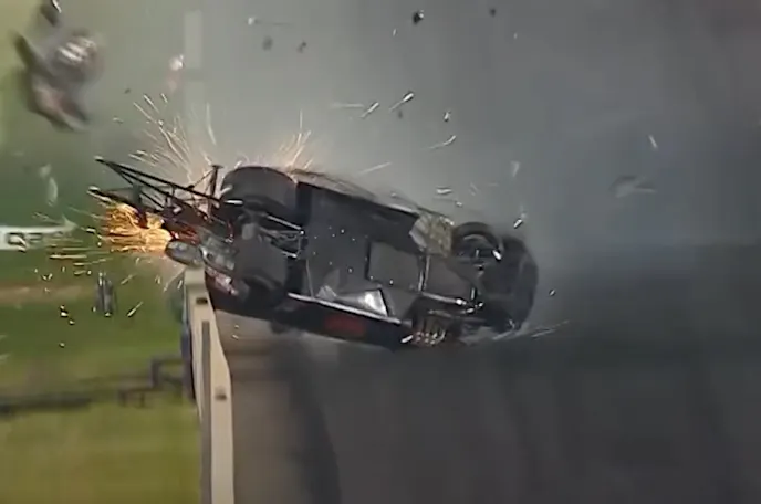 Gray climbed from the battered machine under his own power and was checked out by the NHRA Safety Safari.