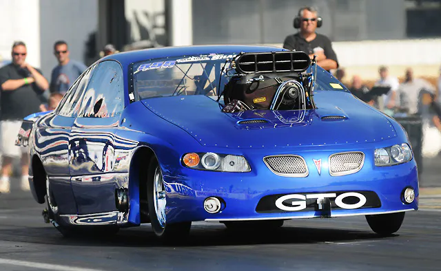 Things have been relatively quiet on the Outlaw 10.5 home-front since last fall, but the peace and tranquillity was rudely interrupted on Tuesday by the screw-blown Hemi between the framerails of the Pontiac GTO owned by Gil Mobley and driven by Richard Sexton.