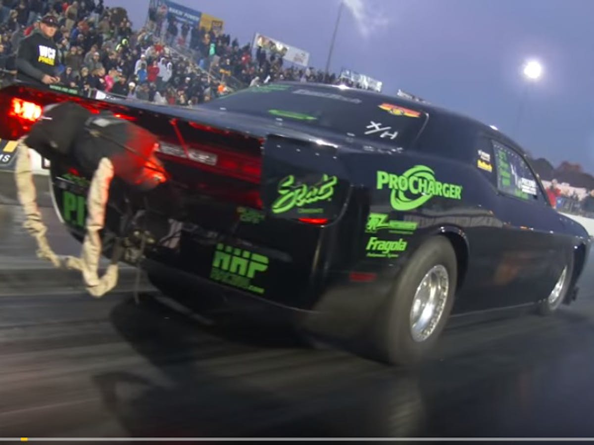 Chris Schneider pulled off a wild upset in Norwalk's annual wheelstand contest. Despite the rough hit, the car still pulled to the line the next day.