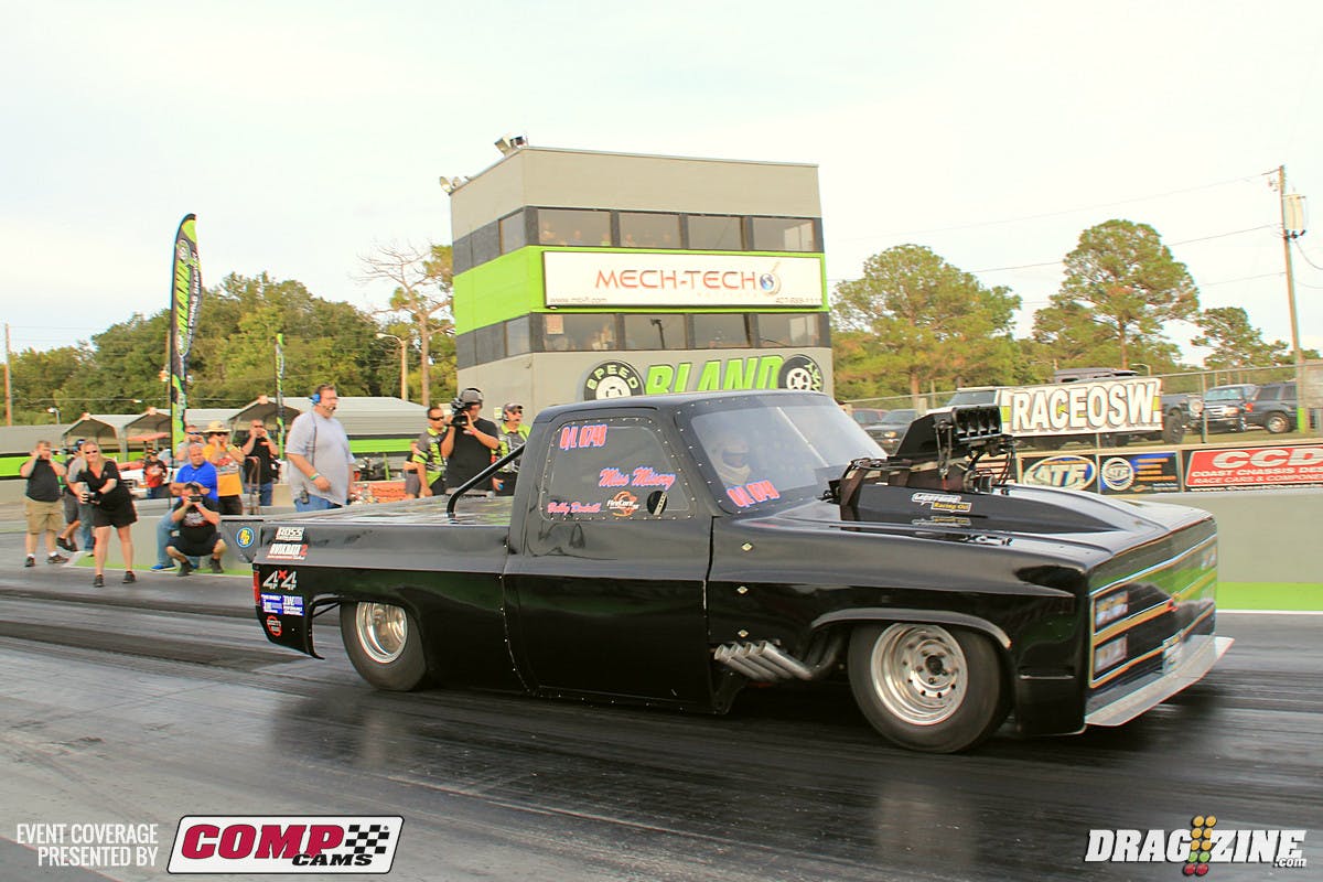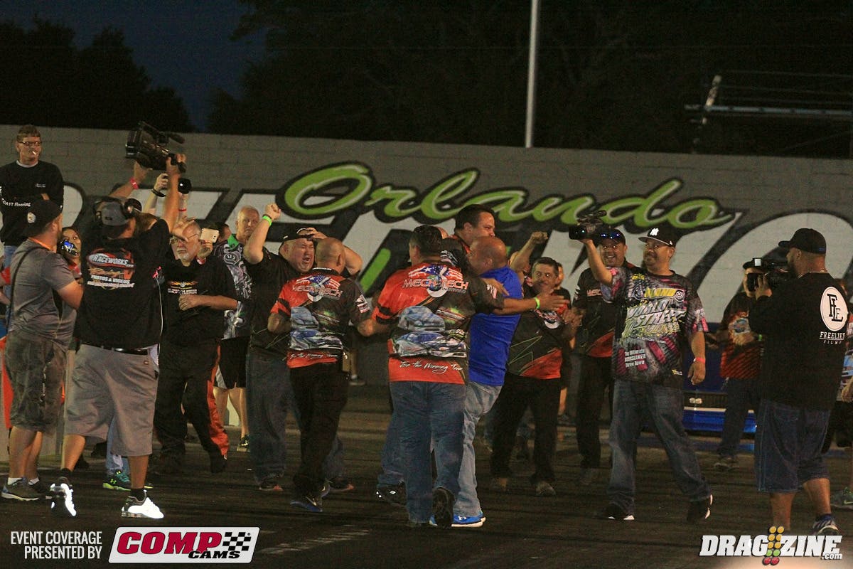 On the complete opposite end of the cubic-inch spectrum from Rojas’ is two-time NHRA Pro Modified world champion Rickie Smith, whose 903-inch Pat Musi powerplant could swallow up the little 2JZ in one gulp. Smith, already the owner of the quickest and fastest nitrous Pro Modified run in history, one-upped himself during qualifying at Orlando, scorching the Florida facility with a 5.760 at 250.18 mph. That run, which came by way of a .951 short time and a 3.799 to the 1/8-mile clock, qualified the North Carolinian atop the raceday field.