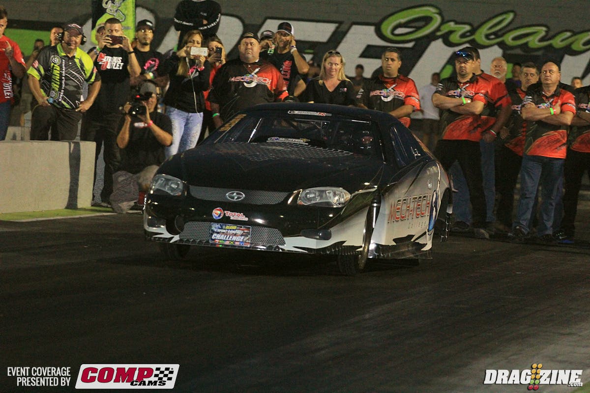 Isiais Rojas, a familiar face in the fast doorslammer ranks at events in the Southeast, delivered the biggest shot of the race (and one of the top runs of the year by any measure) when he drove his Toyota 2JZ-powered, turbocharged Toyota Scion to the first-ever 5-second run in the United States by an import-powered vehicle, going 5.98 at 241 mph during qualifying. While still a few-thousandths of a second shy of EKanoo Racing’s barrier-breaking 5.97 run earlier this year, Rojas’ run is nonetheless an impressive feat considering the difference in resources and testing time.