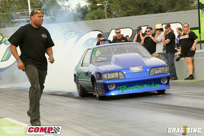 On the complete opposite end of the cubic-inch spectrum from Rojas’ is two-time NHRA Pro Modified world champion Rickie Smith, whose 903-inch Pat Musi powerplant could swallow up the little 2JZ in one gulp. Smith, already the owner of the quickest and fastest nitrous Pro Modified run in history, one-upped himself during qualifying at Orlando, scorching the Florida facility with a 5.760 at 250.18 mph. That run, which came by way of a .951 short time and a 3.799 to the 1/8-mile clock, qualified the North Carolinian atop the raceday field.