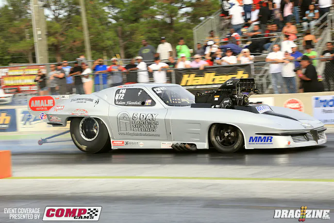 Isiais Rojas, a familiar face in the fast doorslammer ranks at events in the Southeast, delivered the biggest shot of the race (and one of the top runs of the year by any measure) when he drove his Toyota 2JZ-powered, turbocharged Toyota Scion to the first-ever 5-second run in the United States by an import-powered vehicle, going 5.98 at 241 mph during qualifying. While still a few-thousandths of a second shy of EKanoo Racing’s barrier-breaking 5.97 run earlier this year, Rojas’ run is nonetheless an impressive feat considering the difference in resources and testing time.