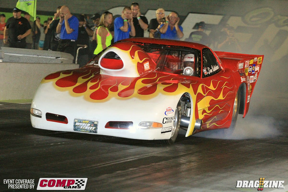 On the complete opposite end of the cubic-inch spectrum from Rojas’ is two-time NHRA Pro Modified world champion Rickie Smith, whose 903-inch Pat Musi powerplant could swallow up the little 2JZ in one gulp. Smith, already the owner of the quickest and fastest nitrous Pro Modified run in history, one-upped himself during qualifying at Orlando, scorching the Florida facility with a 5.760 at 250.18 mph. That run, which came by way of a .951 short time and a 3.799 to the 1/8-mile clock, qualified the North Carolinian atop the raceday field.