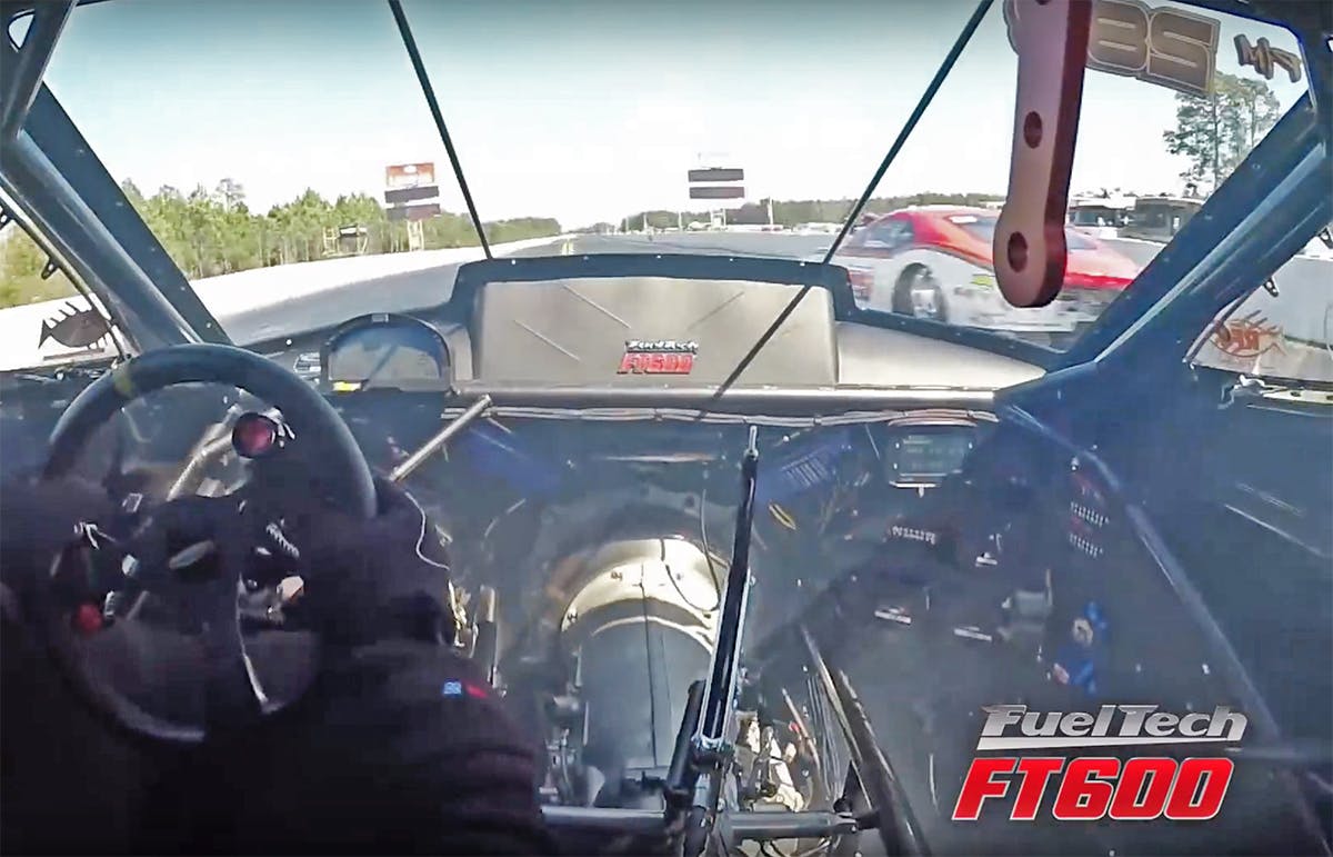 With the quarter-mile mark coming in a hurry and Jackson already on the parachutes, Frigo had to use every ounce of his years of driving experience to collect his machine to avoid running up the back of the Bahrain 1 Camaro. Despite the code-brown, all hands and feet on-deck effort that might send a lesser driver on his or her roof, Frigo managed to keep it off the wall and on all fours.