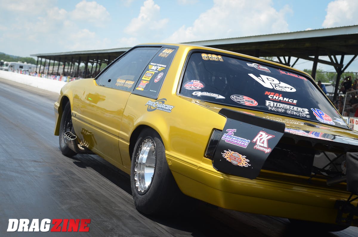 In their match, both Collier and Guest launched into tire shake early; Collier was able to pedal his car and drive through the shake, unaware that his dragster had broken the wheelie bar at the rear of the chassis designed to keep it on terra firma. Near mid-track, the dragster began its skyward climb, ultimately standing on its tail — the body peeling away as designed — as the chassis pirouetted and slammed back down on all four wheels, facing back toward the starting line. Collier’s dragster slid to a stop in the shutdown area —alert and conscious, the Safety Safari tended to Collier and removed him from the car for transport to the Topeka Trauma Center for evaluation.