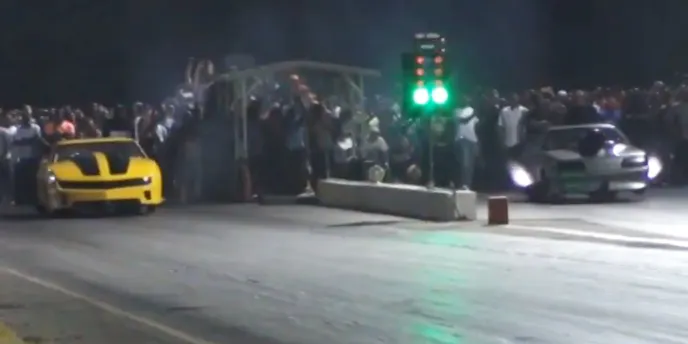 Jackson, who has made his name and his presence felt from the small-time grudge wars in the south all the way to the middle east in his Pro Nitrous Camaro, met up for another round in the ring with his rivals at PrimeTime Racing at the House of Hook in South Carolina over the weekend, and delivered another humdinger of a performance — on and off the track — as he and his “Shadow” nitrous-fed Mustang from KillinTime Racing easily handled Tony Bynes’ turbocharged “Bumble Bee” Camaro. And in true Stevie Fast fashion, the smack talk didn’t end at the finish line, as he thanked PrimeTime for helping to pay his mortgage, and even slyly offered to give them a monetary donation to keep them racing — a tongue-in-cheek comment referring to the number of times they’ve met and PrimeTime has come up on the losing end.
