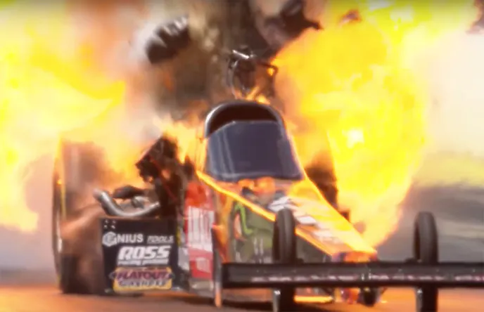 NHRA Top Fuel racer Terry McMillen rattled the entire state of New Hampshire on Sunday morning when the engine in his Amalie Motor Oil dragster erupted in incredible fashion during the opening round of eliminations at the NHRA New England Nationals in Epping, N.H.