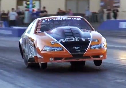 The Moits Racing team, with Paul Mouhayet at the wheel, recently clicked off a succession of the fastest passes ever recorded on a set of 33-inch, 10.5W tires on the teams twin-turbo Mustang at the Sydney Dragway in Sydney, Australia, exceeding 250 MPH and finally culminating in a stunning 5.990-second blast at a record 252.95 MPH. The five-second run itself was the result of months of hard work put in by the Moits crew, as they steadily progressed through the low six-second zone into the 6.0’s before lighting the boards with the magical “five”.