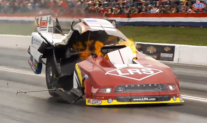 This weekend’s Summit Racing Equipment NHRA Southern Nationals in Atlanta — which is still ongoing on this Monday morning — has been plagued by a slew of on-track incidents that rank it right up there with the more interesting drag races in recent memory. Along with Antron Brown’s horrifying Top Fuel crash in Friday night’s qualifying session and Dan Stevenson’s wild ride in the opening round of Pro Modified eliminations, Funny Car racers Tim Wilkerson and Jack Beckman provided some unplanned fireworks for the Georgia crowd on Saturday, as each suffered tremendous explosions that destroyed the carbon fiber bodies on their machines.